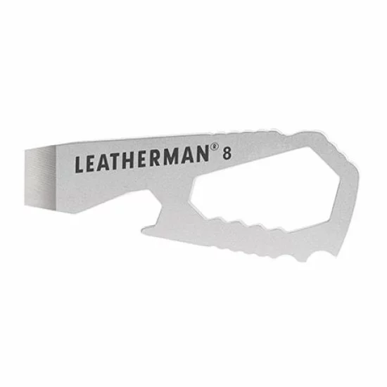 El Leatherman #8 es un compañero útil para el llavero y tiene las siguientes herramientas: destornillador, abrebotellas, llave inglesa de 6 mm, 8 mm, 10 mm, 13 mm y 15 mm.